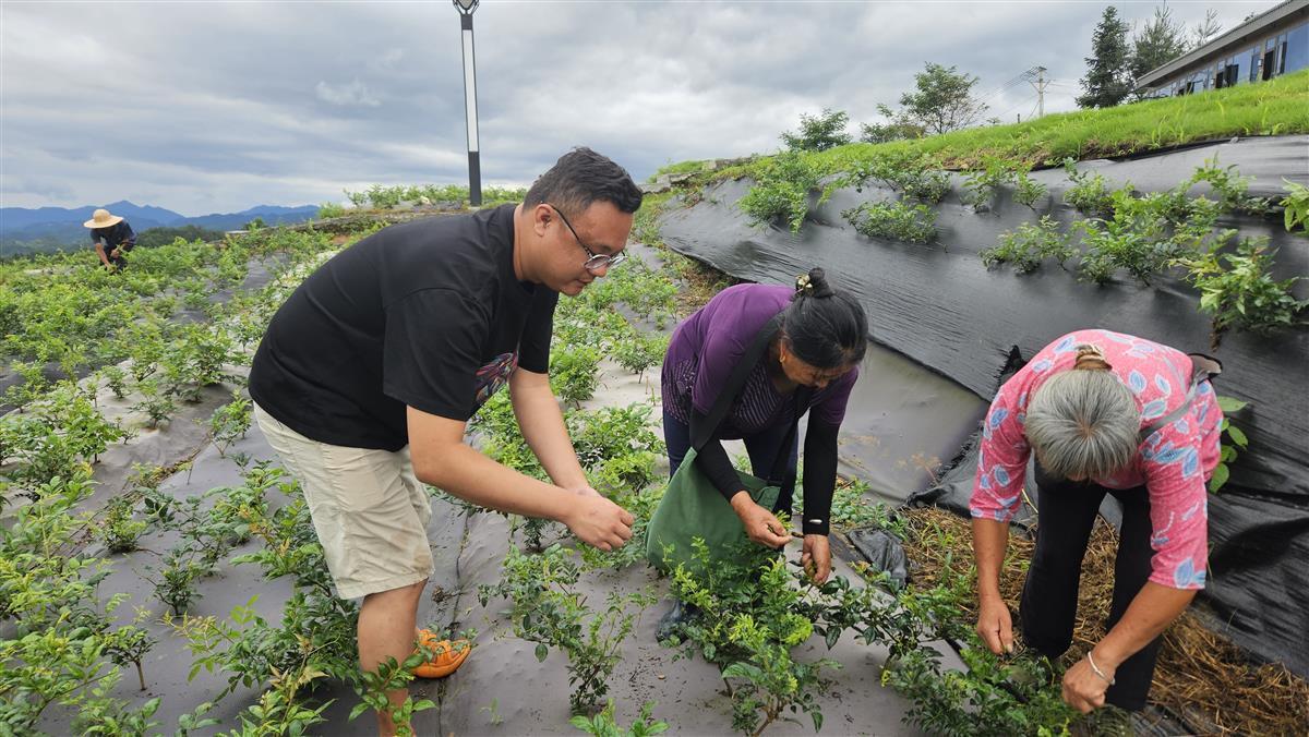 向少华和茶农一起干活