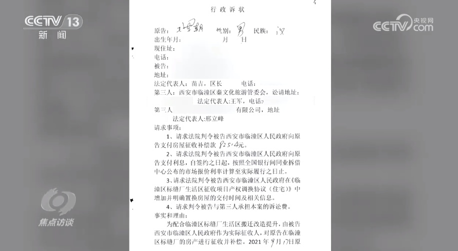 几次协商未果后,2022年4月,张庚武、王军朝等112名标缝厂社区居民分别向西安铁路运输中级法院提起了行政诉讼,要求临潼区政府支付征收安置补偿款及利息。