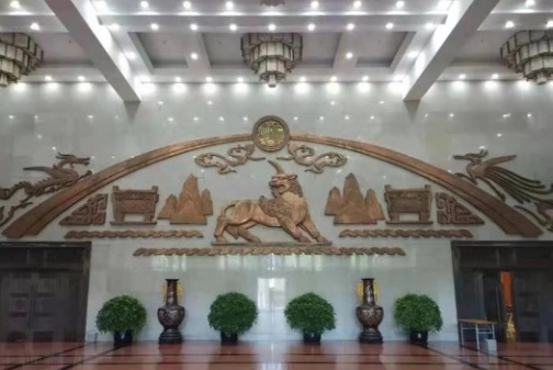 △ 最高人民法院中区大厅铜版画正中的独角兽