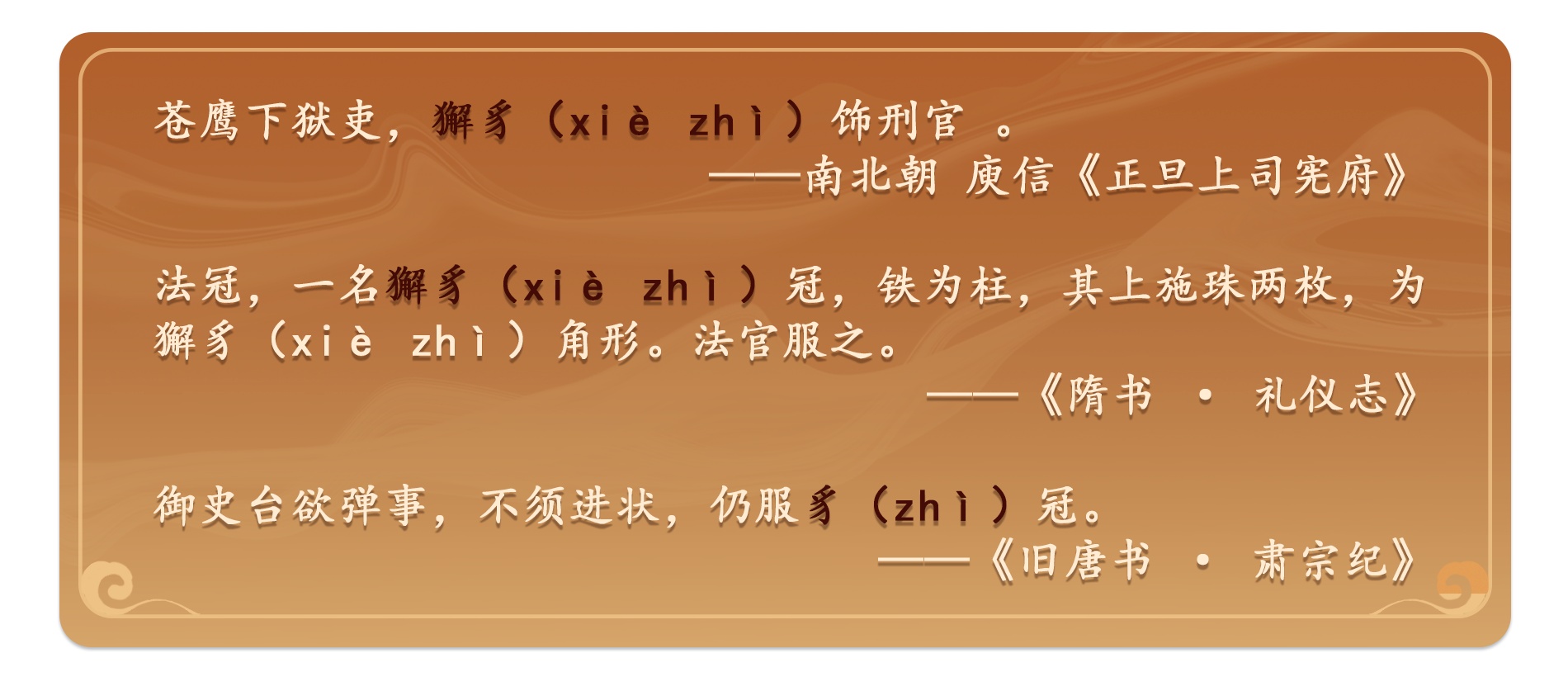 自此,獬豸(xiè zhì)冠成为司法官员的标配: