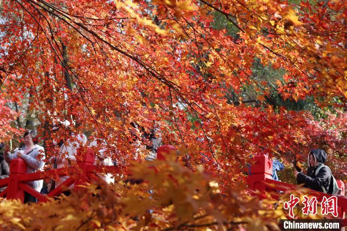 市民来此欣赏红枫。中新网记者 泱波 摄