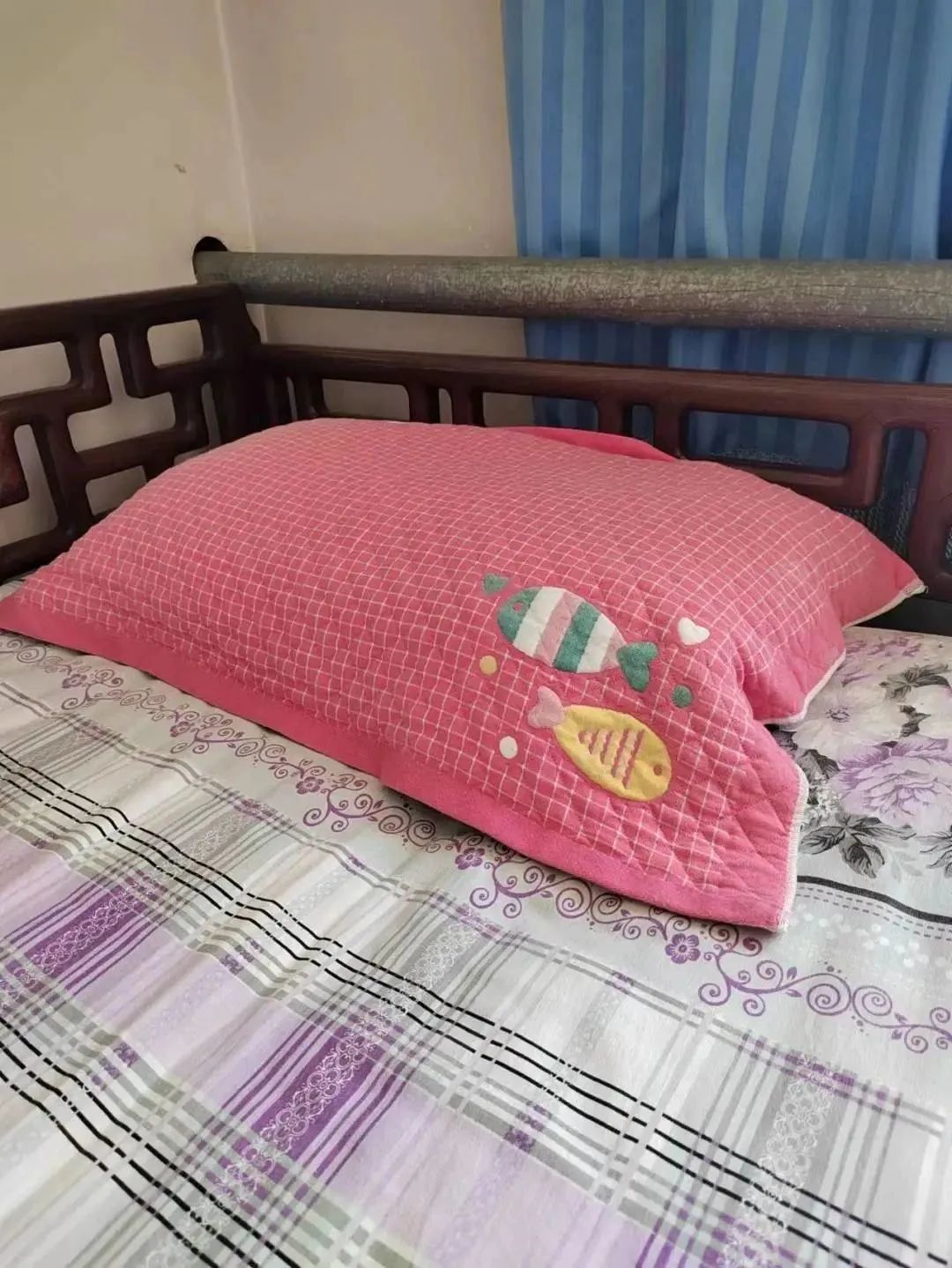 图片金老生前的枕巾,他喜欢鲜艳的颜色,也喜欢带鱼的图案