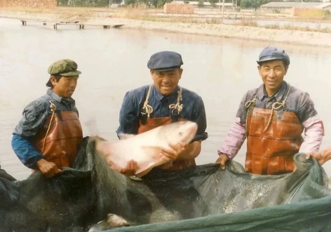 20世纪60年代,金万昆在鱼塘中劳动(资料照片)。新华社发