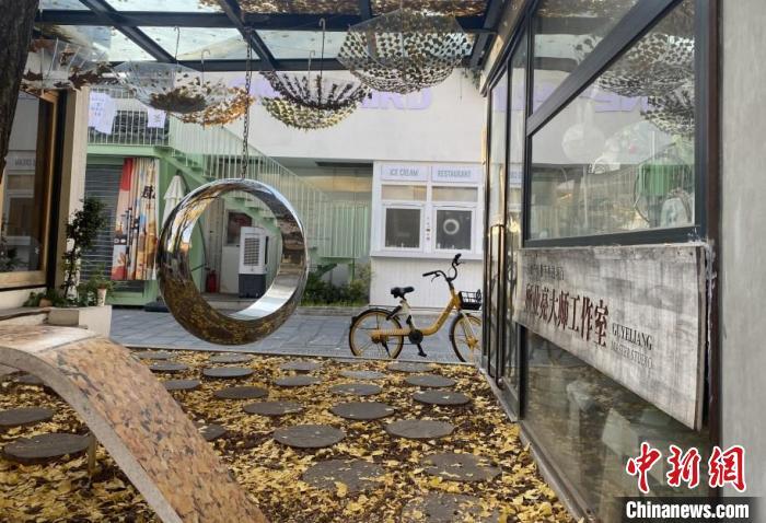 小西湖留根且焕新的同时,也保留了历史文化印记。漫步街区内,一处“满院尽铺黄金叶”的院落引人驻足。连廊间,数把透明的雨伞内粘贴着各色树叶倒悬空中。雨伞下的石阶路上,落叶不扫,别有风韵。推开玻璃门探往屋内,却是一片张灯结彩的画面。