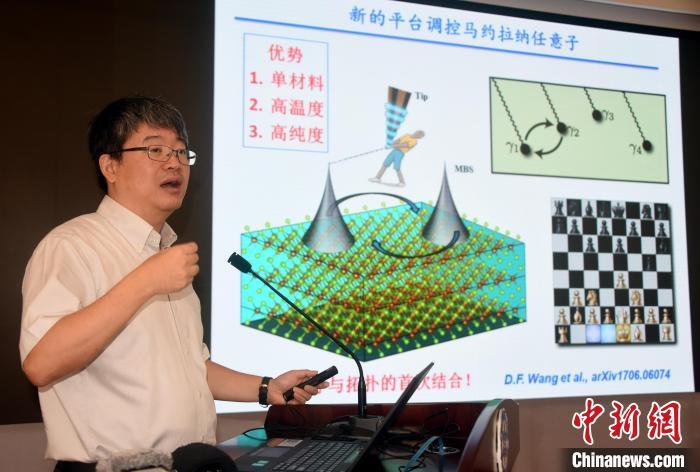 2018年,丁洪团队与高鸿钧研究团队首次在铁基超导材料中观测到马约拉纳任意子,对构建稳定的、高容错、可拓展的未来量子计算机的应用具有重要意义。资料图为丁洪介绍研究成果。中新社记者 孙自法 摄