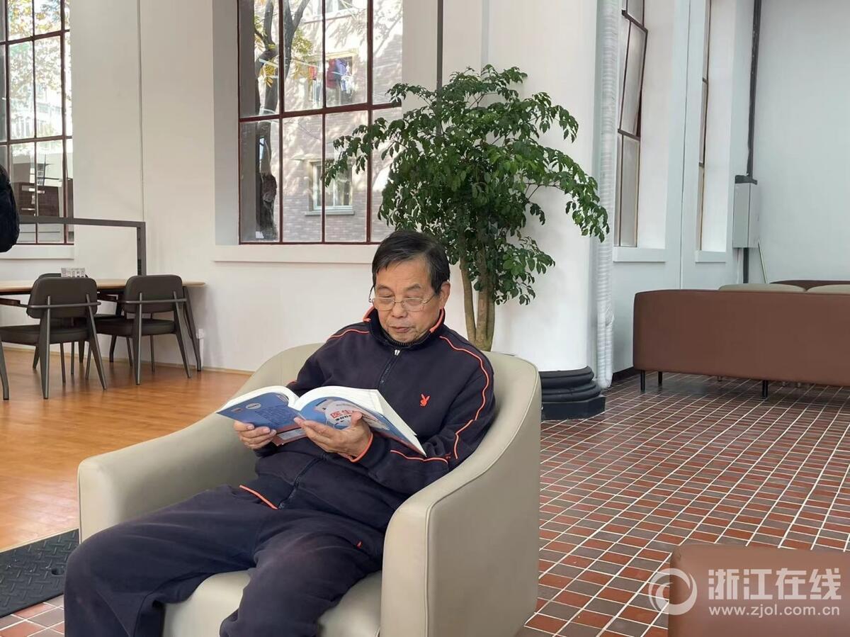 浦秀栋从西湖区赶来看书 记者 陈雷 摄