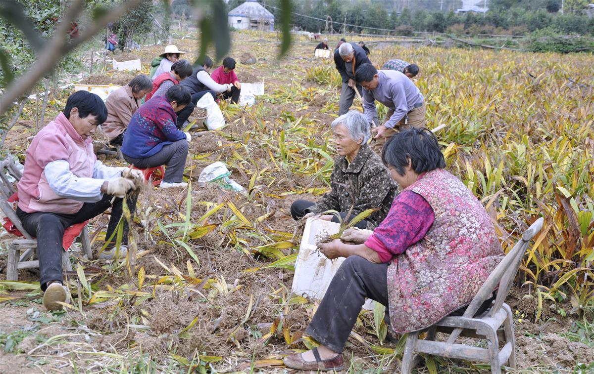 郧西县林下中药材种植喜获丰收 (邹景根摄)走进谭祝全连翘林下养鸡场,只见散养在连翘树林里的土鸡,“野性”十足,轻盈若飞鸟,在林子里一路狂欢,有的飞向树枝互比站高,有的飞追空中划过的虫蛾,有的倾卧林间草丛晒着暖洋洋的太阳……一只只体态均匀的土鸡或觅食、或嬉戏,构成一幅生动的林下经济发展图。