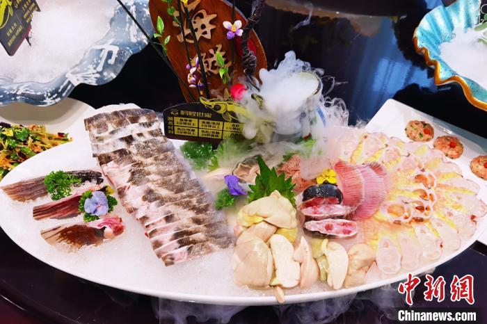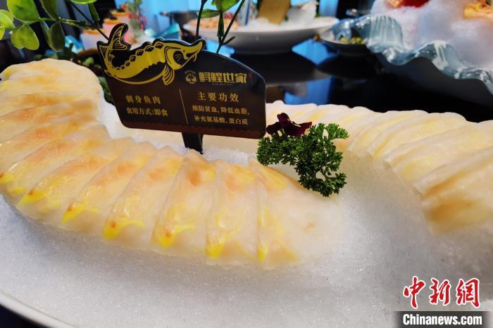 鲟鳇鱼肉刺身。 中新社记者 王琳 摄