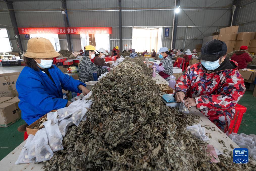 12月7日,在蕲春县高新铺村的就业帮扶车间,工人在加工蕲艾产品。
