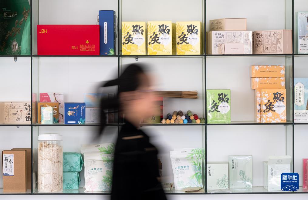 这是在蕲春县高新铺村的就业帮扶车间拍摄的蕲艾相关产品(12月7日摄)。