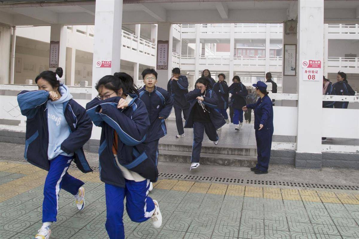 同样的消防安全演练还在建始县民族高级中学、荆门掇刀石中学等学校上演,演练现场采取不通知、不定时的方式拉响火灾警报,以此来检验同学们的逃生应急反应。