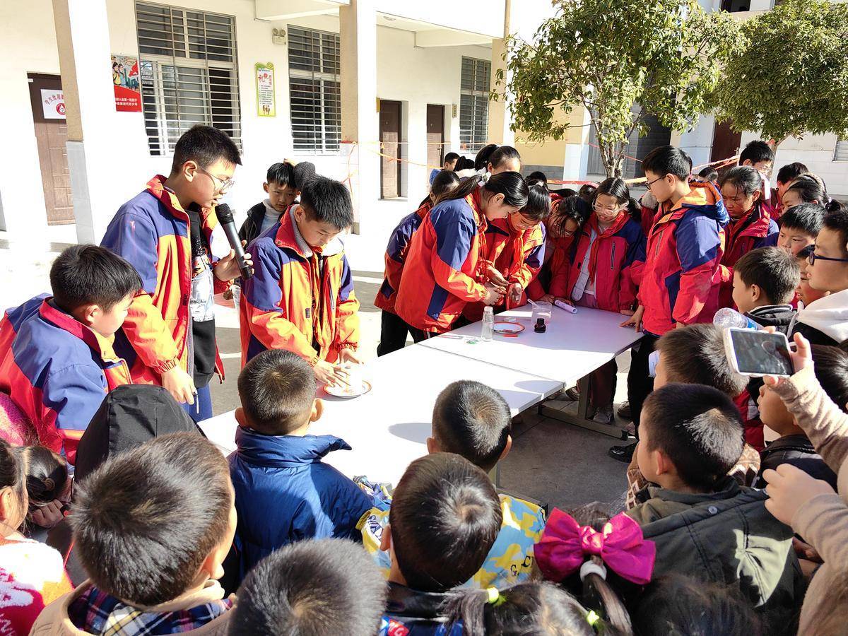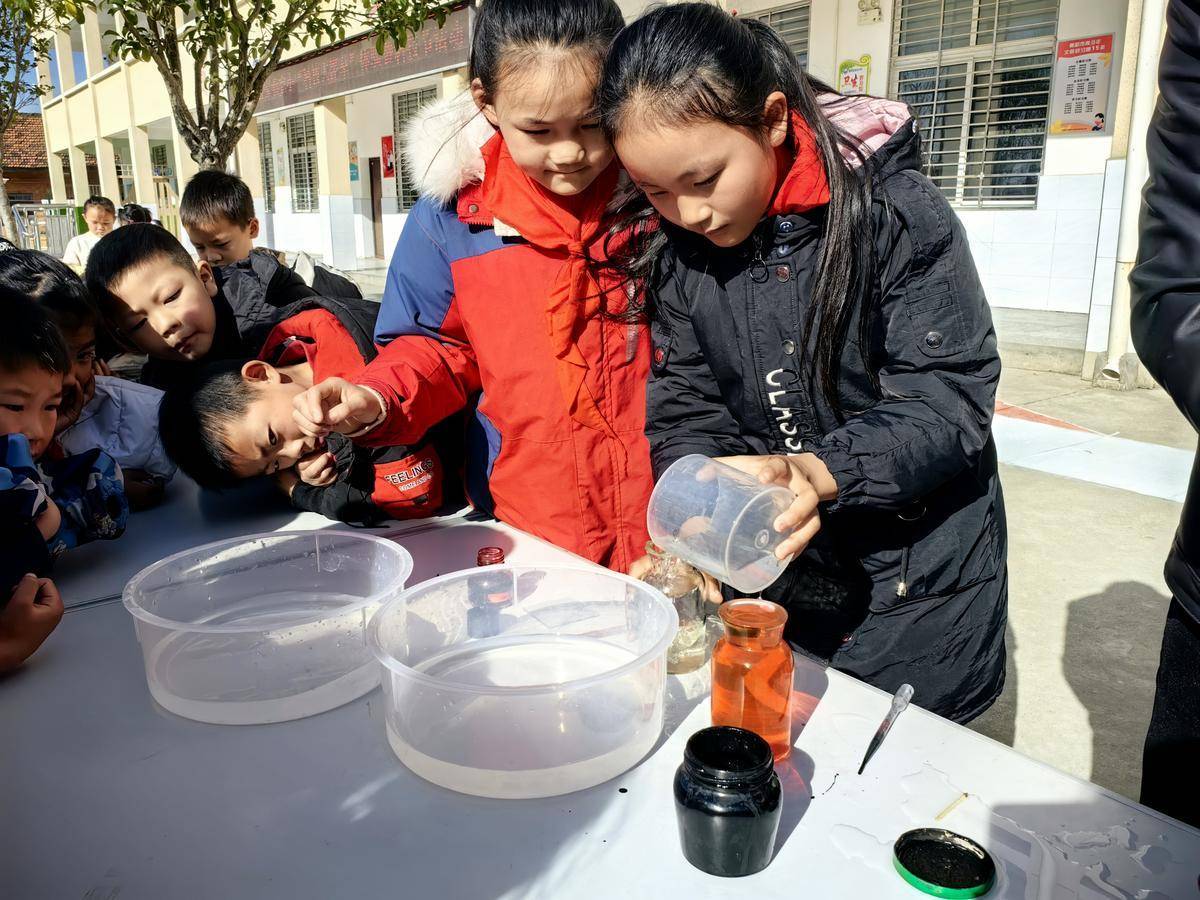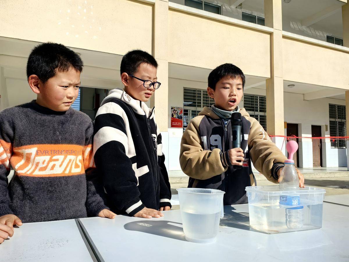科学小实验现场展示环节将活动推向高潮,3-6年级的同学在活动现场做起实验演示,将科学知识“零距离”展现在同学们的面前。