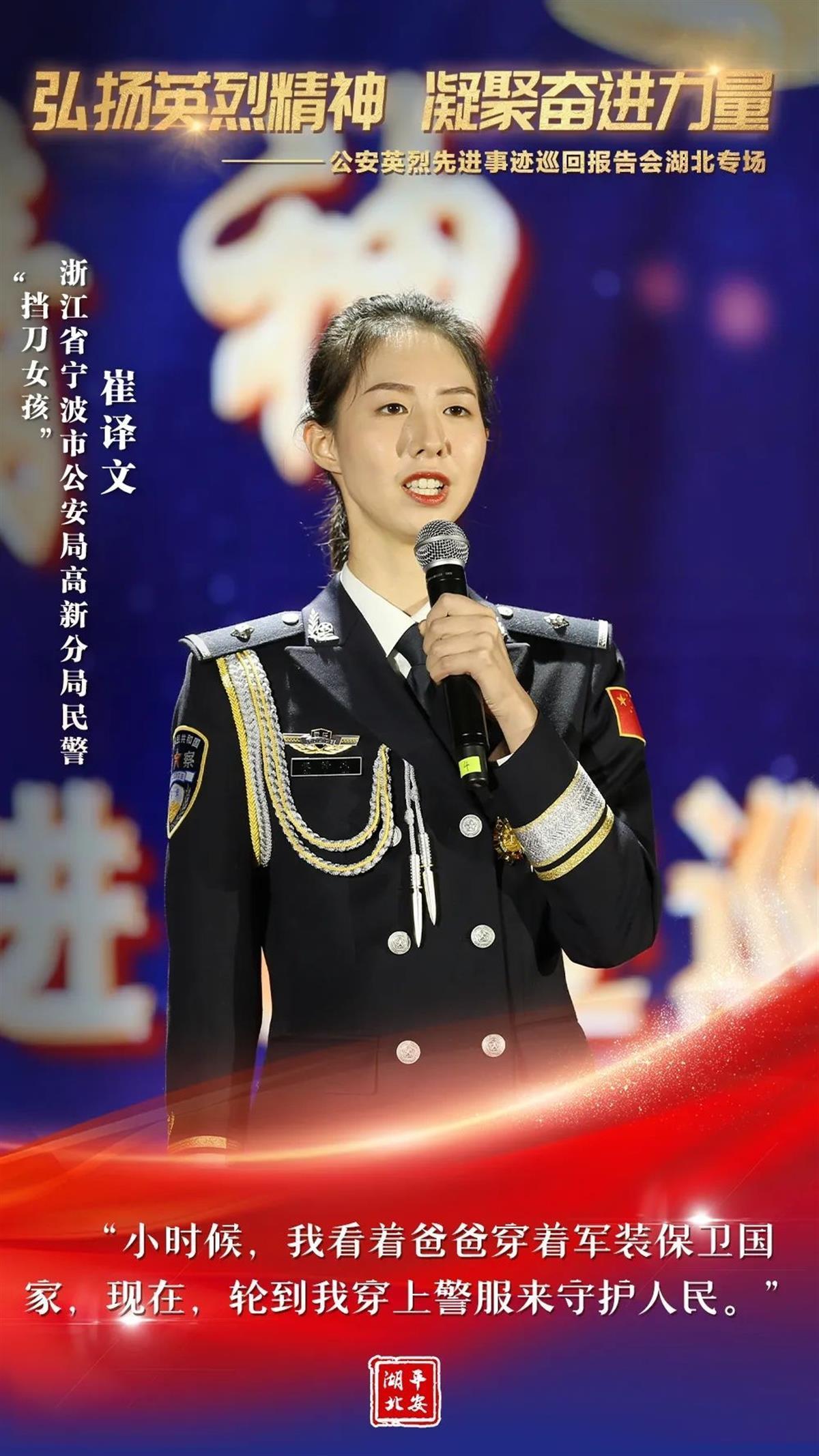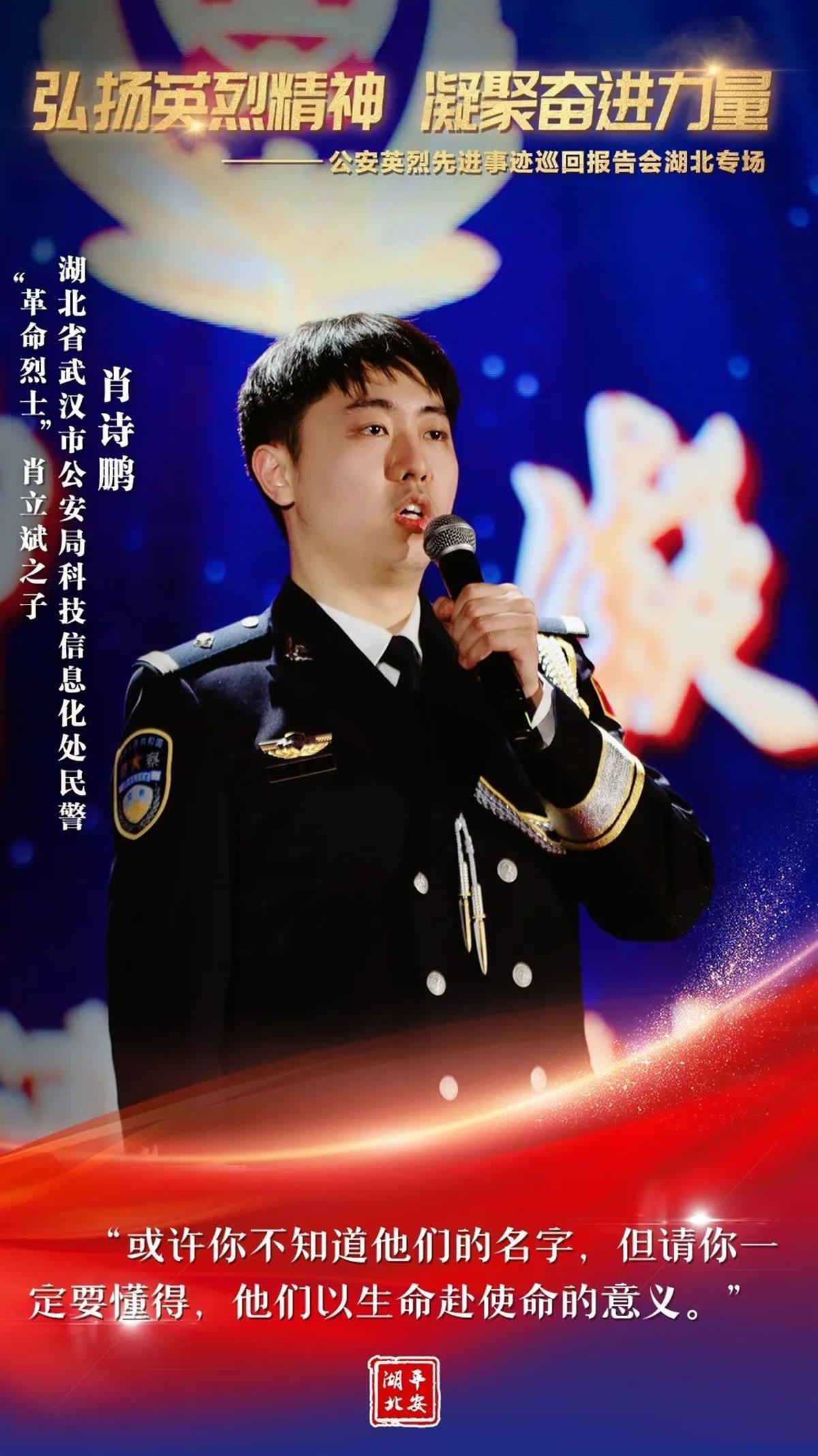 为有牺牲多壮志。“为什么我的眼里常含泪水?因为我对这土地爱得深沉!”大地作证,每一片安宁的土地,都有人民警察血写的忠诚!借助这次让人荡气回肠的报告会,让我们由衷地缅怀那些为国家长治久安和人民安居乐业献出宝贵生命的公安英烈。同时,我们也深切地期待,通过类似的学习、宣传、践行活动,找回一种温暖人心的情感,找回一种英勇无畏的品格,找回一种薪火相传的精神,让“人民警察爱人民、人民警察人民爱”的动人乐章历久不衰!