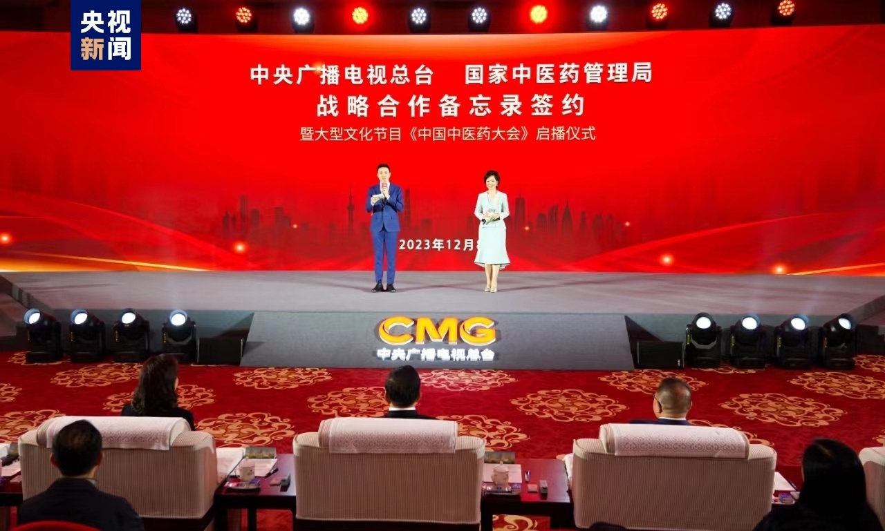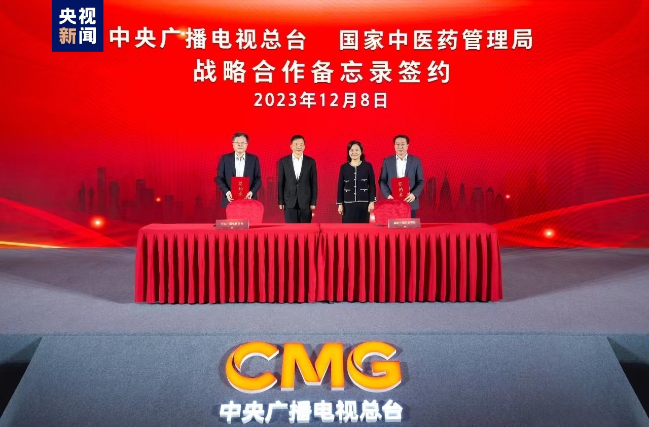 中央广播电视总台华语环球节目中心主任李欣雁与国家中医药管理局综合司司长王思成代表双方签署《中央广播电视总台与国家中医药管理局战略合作备忘录》。根据备忘录,双方将坚持资源共享、优势互补、协同创新、发展共赢原则,在宣传报道、媒体融合、国际传播等领域开展务实合作,促进中医药高质量发展。