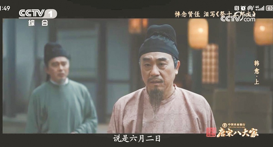 央视《宗师列传》中的韩愈形象(右) (图片来源于节目截图)