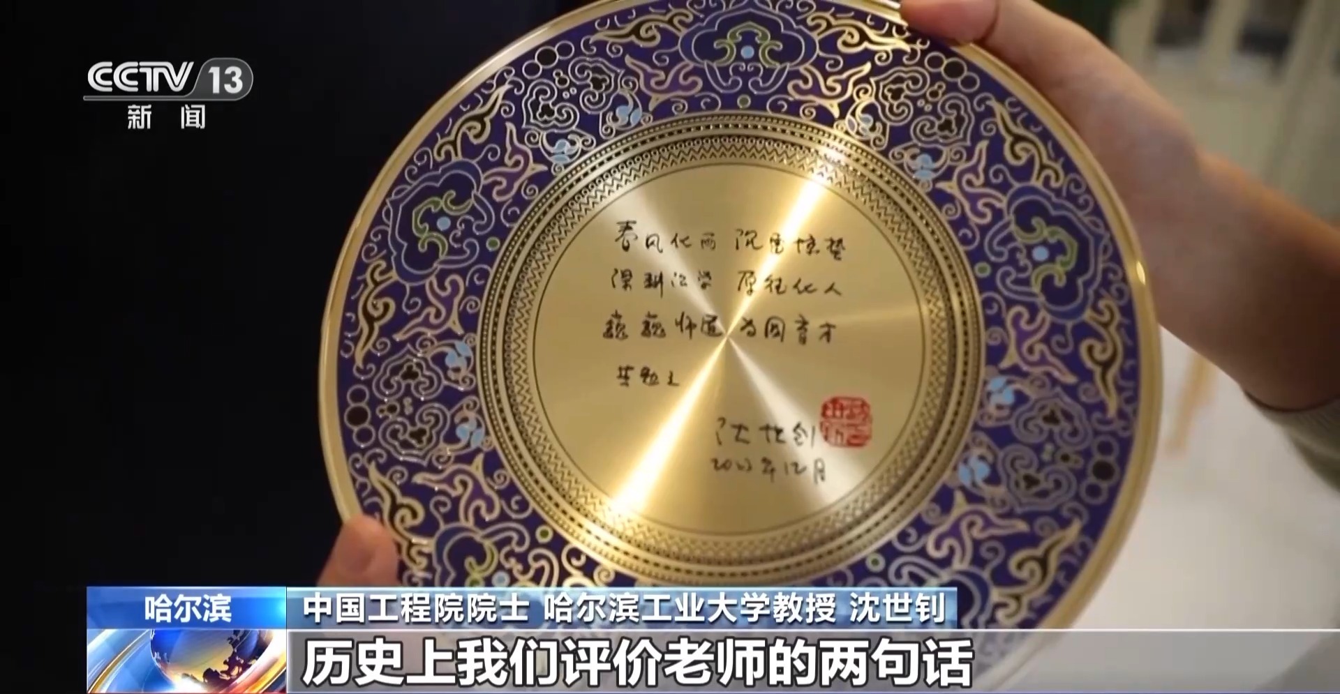 哈尔滨工业大学教授 孙瑛:非常感动,沈老师平时非常节俭,今天看沈老师穿的上衣就有20年的历史,今天穿的裤子也是30年,他家里的用具甚至可能都有用到70年的。他会关心学生各方面的生活细节,有没有困难,就像一个大家长。