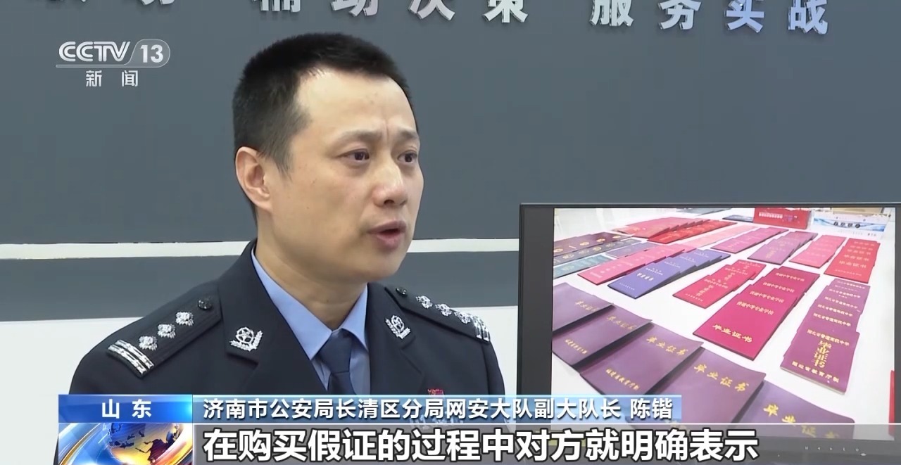 济南市公安局长清区分局网安大队副大队长 陈锴:我们对涉案人员进行询问的过程中,根据他们的陈述,在购买假证的过程中对方就明确表示,他们的证件是可以通过网上进行查询核实的,而且有相对应的学校以及证书查询的信息系统。