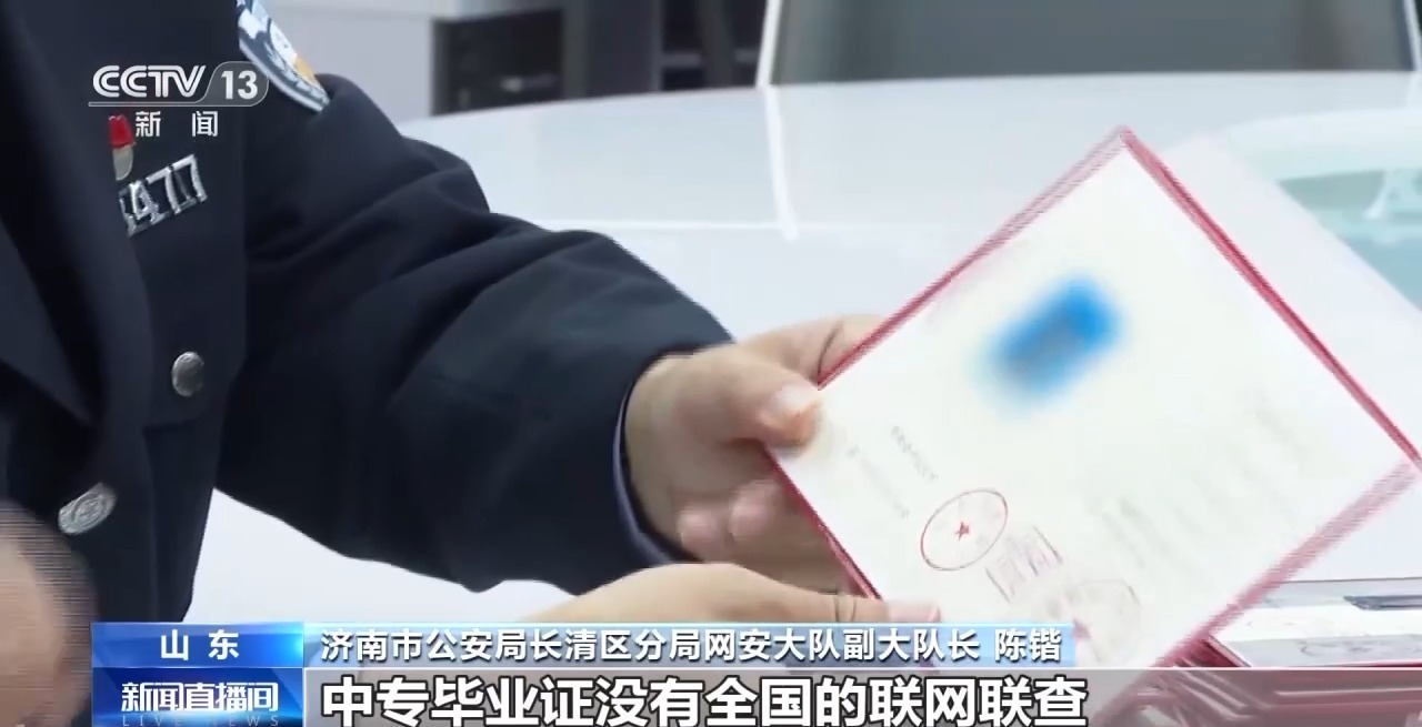 济南市公安局长清区分局网安大队副大队长 陈锴:中专毕业证没有全国的联网联查。这些证成色都比较新,但打印时间都比较久远,有的甚至10年以上。综合这些情况,他们认为这些证是近期制作的可能性比较大。