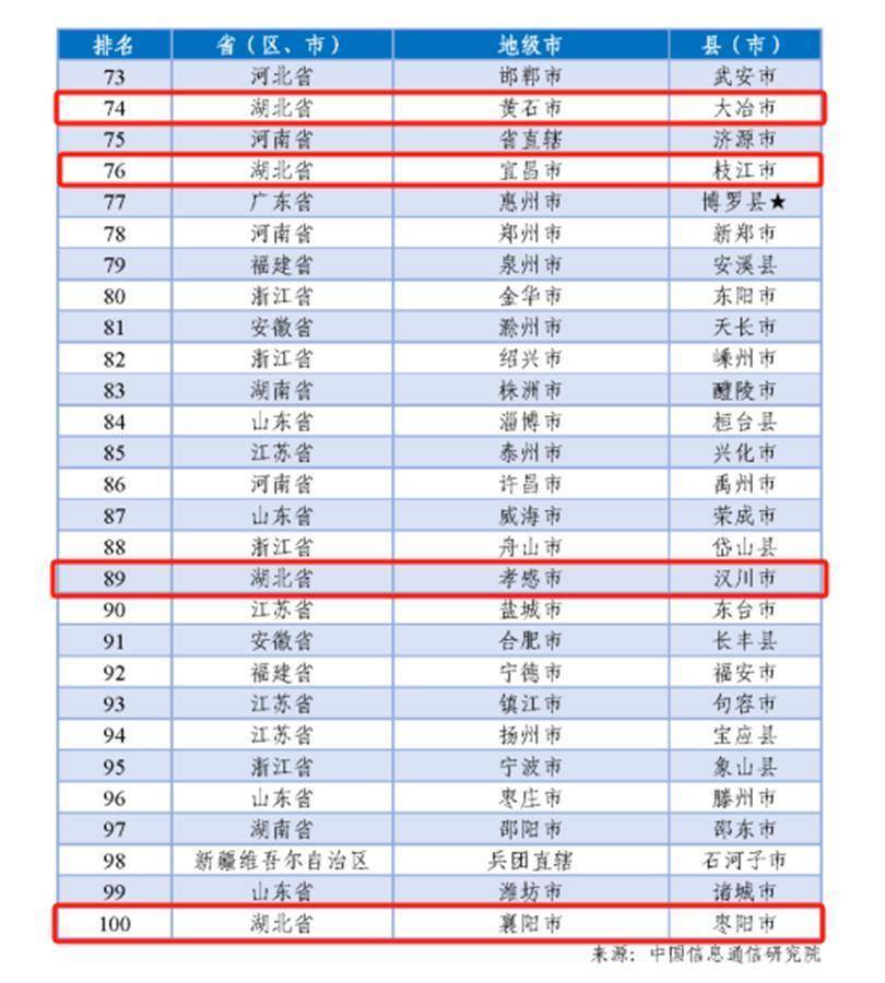 湖北日报讯(记者吴文娟)12月7日,工业和信息化部下属的中国信息通信研究院揭晓了2023年中国工业百强县(市)。湖北共有6市上榜,入选数量居中部第一。