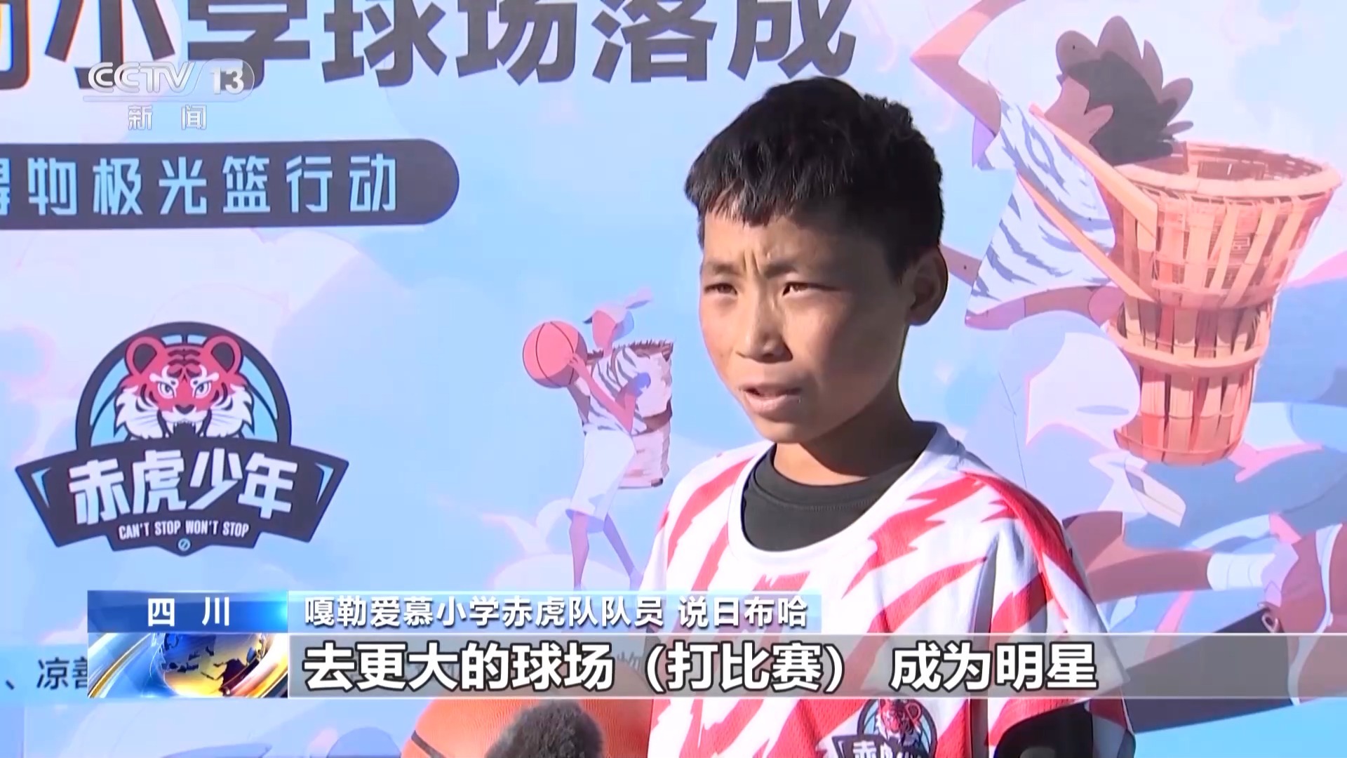 嘎勒爱慕小学赤虎队队员 说日布哈:我想一直打篮球,去更大的球场(打比赛),成为明星。