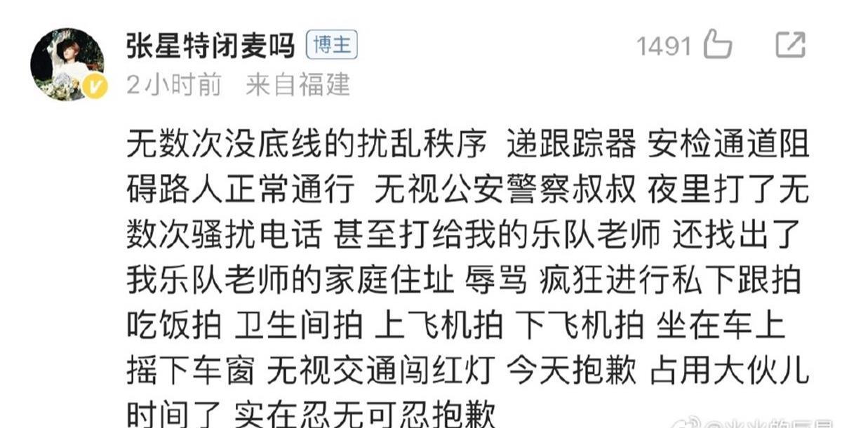 而据张星特的粉丝反映,他被私生饭无理骚扰已经不是一天两天。曾经有私生饭在给他的信件中放入跟踪定位器,严重侵犯其个人隐私,其工作室还曾因此发声明称,以后艺人在任何场合将不再接收任何信件及其他物品。还有私生饭曾经跟他跟到机舱内,扰乱了机舱正常秩序,他开直播反拍曝光她们,并表示自己已经忍无可忍。或许也正是因为这一连串“硬刚”的行为,导致了他在机场被这样当面冒犯和羞辱。