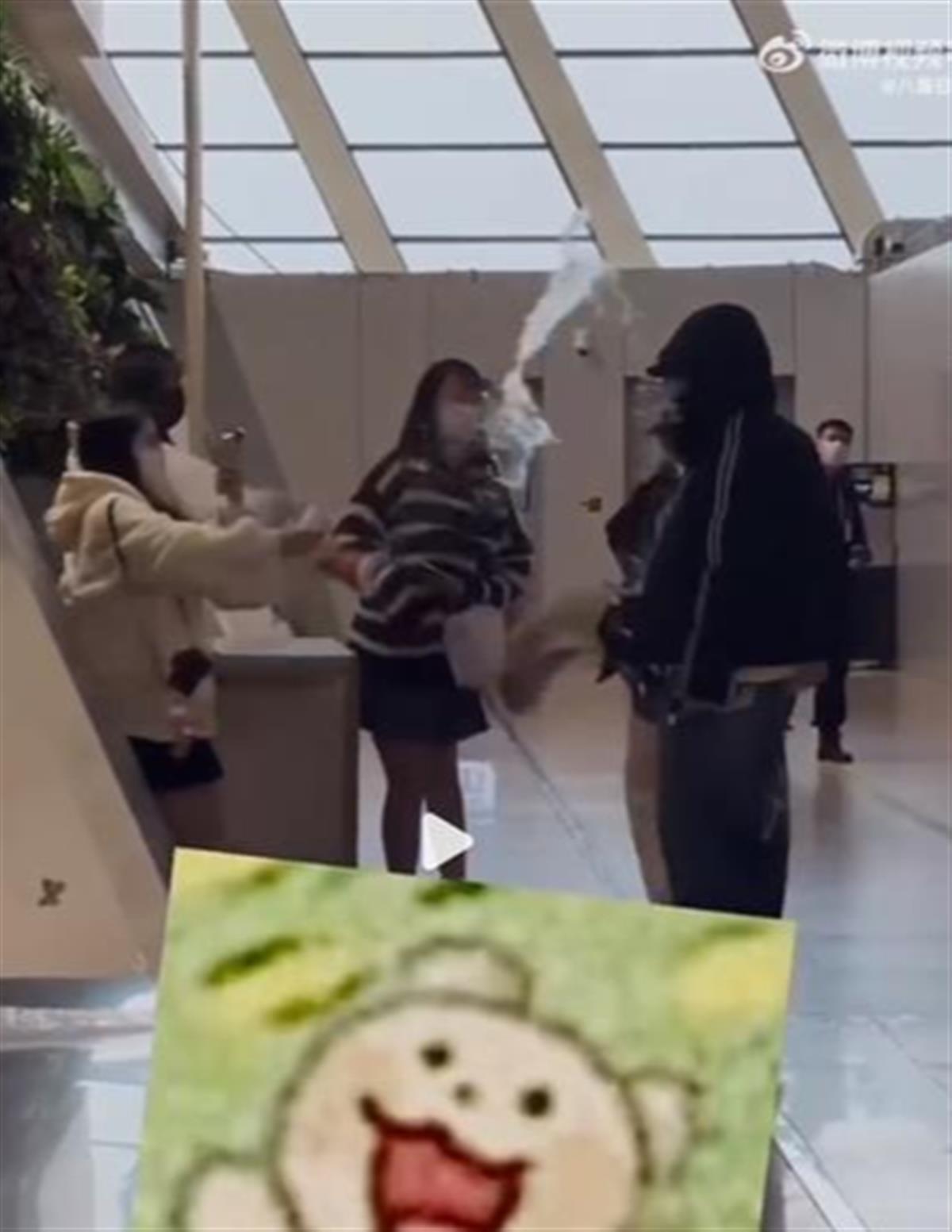 张星特在机场被私生饭当面泼水 (来源:网络视频截图)