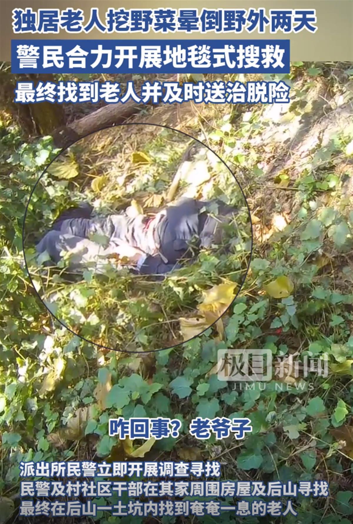 据熊某介绍,自己于两日前上山准备挖点野菜,但走到半山腰时突然感觉一阵眩晕,便瘫倒在地上失去意识,自己也记不清晕倒在此多久,直到被民警发现后送医院救治后才慢慢恢复意识。