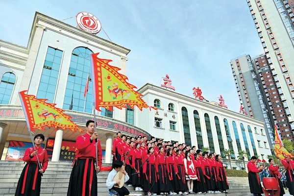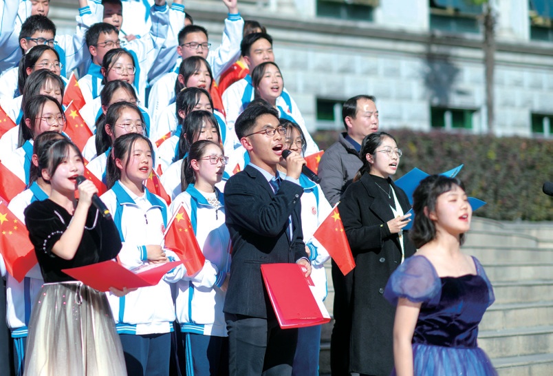 12月9日,东风高中高一年级开展爱国歌曲合唱比赛,以“强国新‘声’代”为题,唱出东高学子爱国好声音。图/记者 罗杰 通讯员 潘峰 房倩
