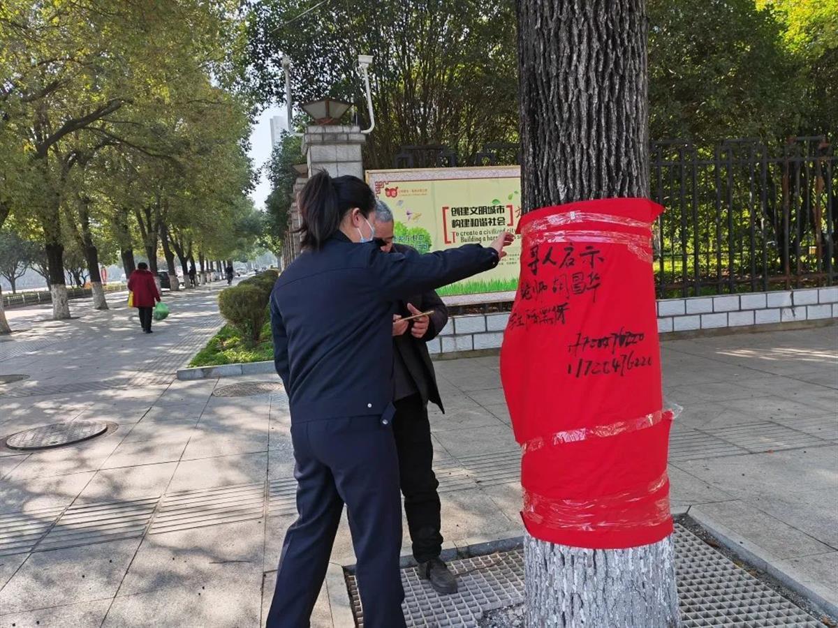 随后,蔡培陪同陈爹爹一起前往张贴处亲手撕下寻人启事,为城市创卫贡献自己的一份力量。