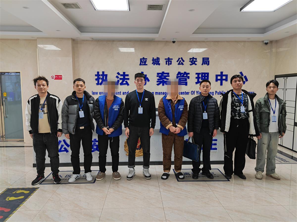 犯罪嫌疑人孙某(左三)、冯某(左五)被抓