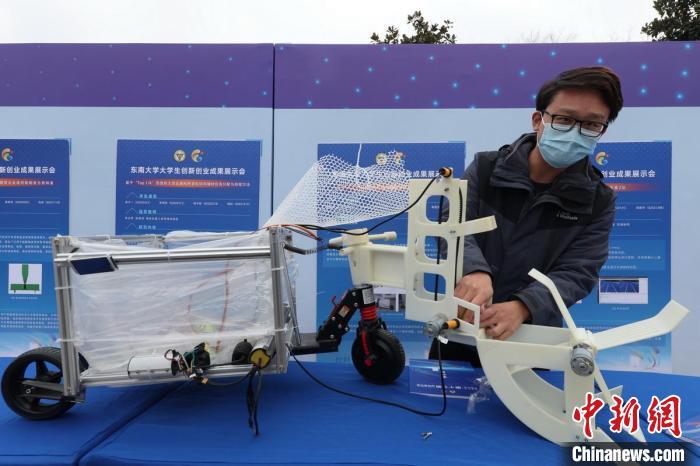 12月12日,江苏南京,东南大学第十七届大学生创新创业成果展示会在该校九龙湖校区举办,方程式赛车、足球机器人、自动网球捡球机等一批在各级各类学科竞赛中获奖的作品以及大学生自主研学优秀作品亮相,集中展示了学生们的创新成果。