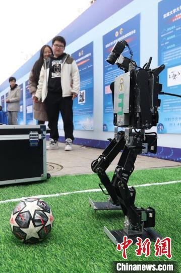 足球机器人展示“球技”。中新网记者 泱波 摄
