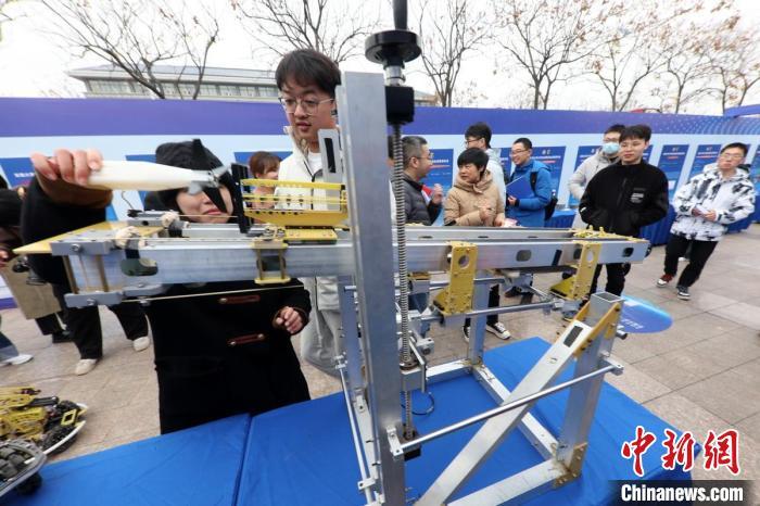 大学生演示微型飞行器精准发射系统功能。中新网记者 泱波 摄