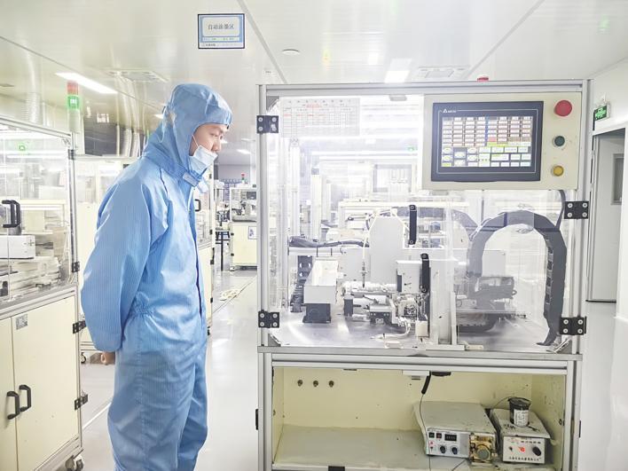 走进园区的一个车间,一个盛满水的玻璃容器引人注目。“这可不是普通的自来水,而是超纯水。”任骥麟提醒道。