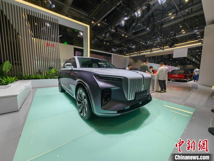 图为中国第一汽车集团有限公司展出的红旗E-HS9型新能源车。中新网记者刘大炜摄