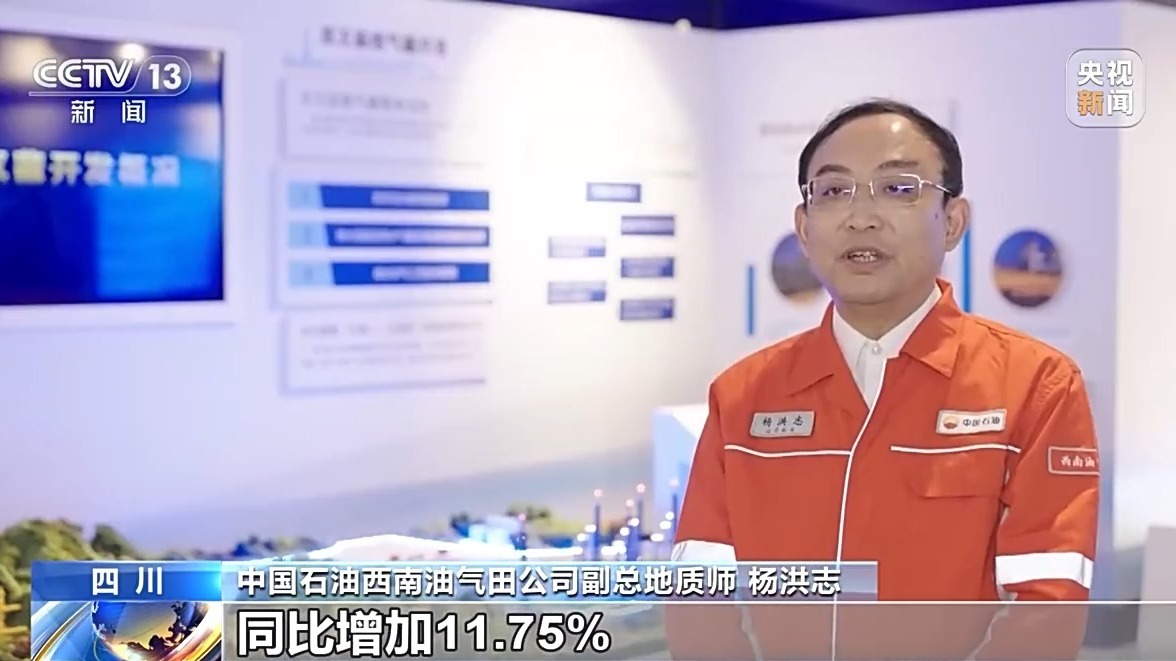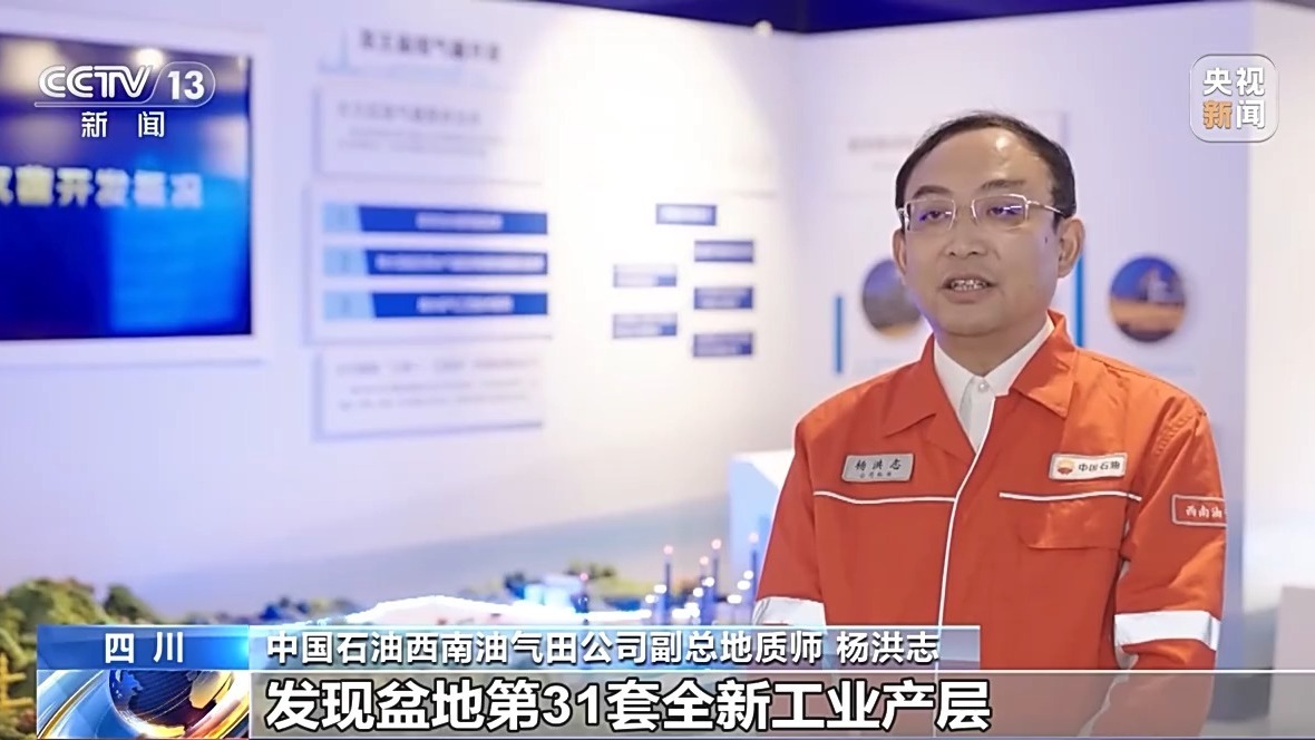 中国石油西南油气田公司副总地质师 杨洪志:我们聚焦常规气、页岩气、致密气三大领域,突出高效勘探、效益开发。发现盆地第31套全新工业产层;自主开发的铁山坡高含硫气田全面达产,实现特高含硫气田“少井高产”重大突破。