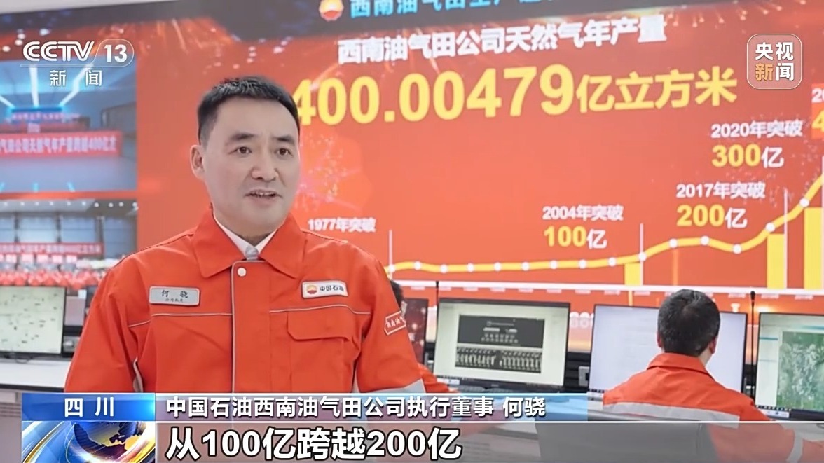 中国石油西南油气田公司执行董事 何骁:从100亿跨越200亿,我们用了13年的时间,从200亿到建成300亿战略大气区仅用3年,今年上产400亿,占同期全国天然气产量的1/5,离实现2025年上产500亿方的目标又近了一步。