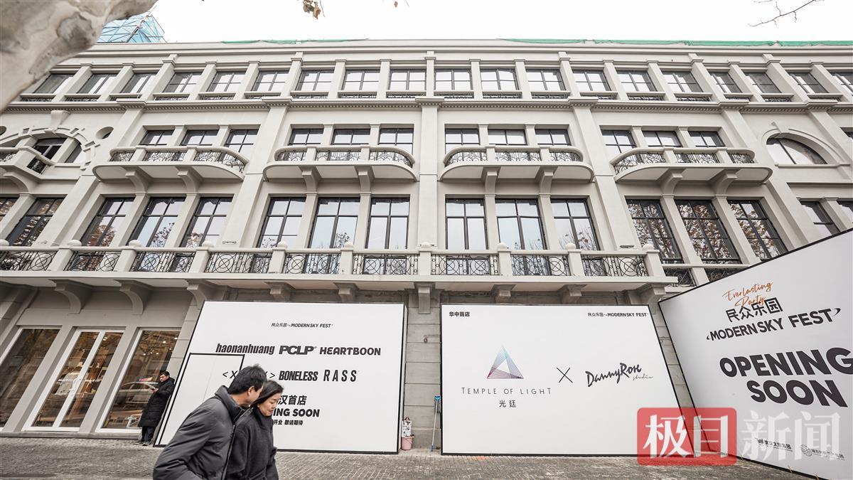 12月13日,汉口民众乐园完成立面修“旧”焕新,处于中山大道临街店铺已有几家著名品牌店正在营业,还有多个品牌“华中(或武汉)首店”正忙着装修,紧锣密鼓地筹备开业。
