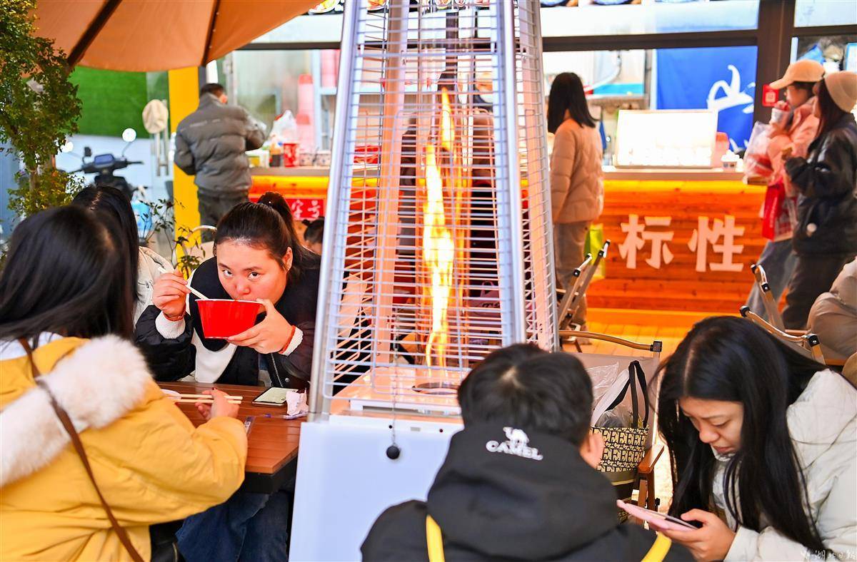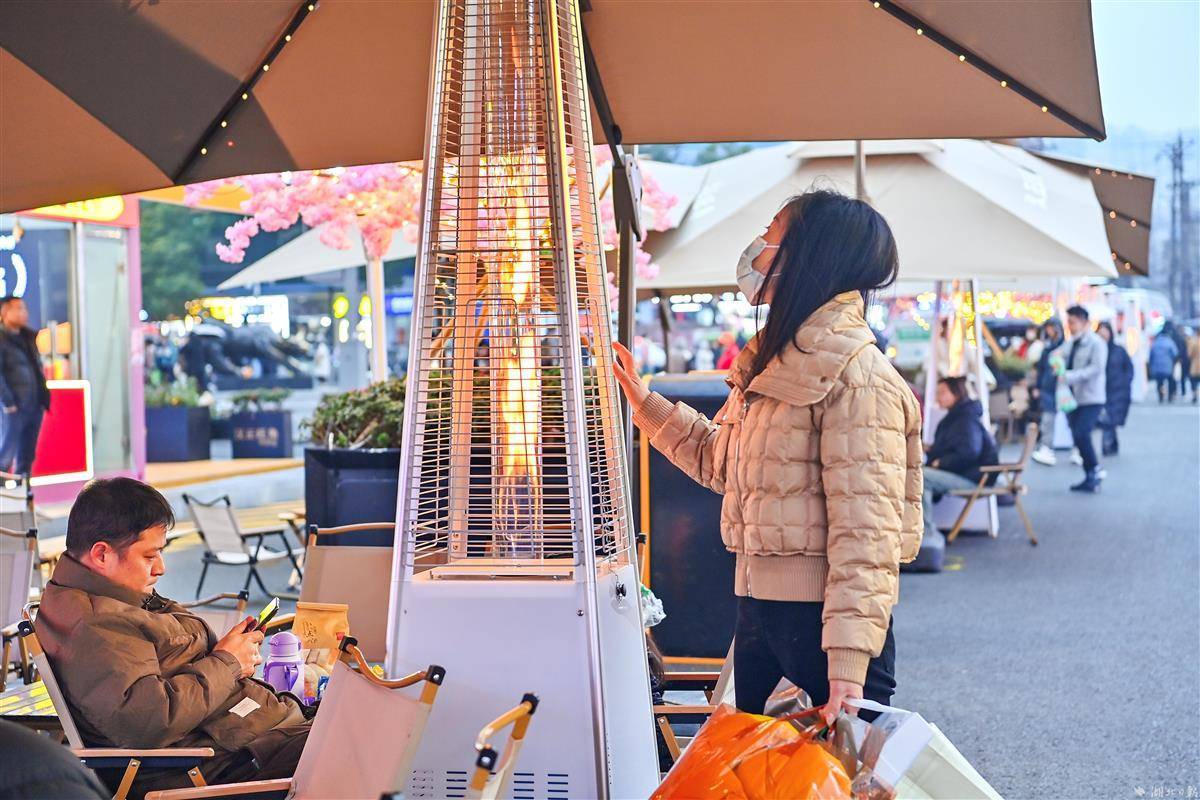该小吃街近日开街,为了方便食客在寒风中烤火取暖,每家小吃店均在户外架起一个煤气炉,供食客和路人烤火,这波操作太暖心了。