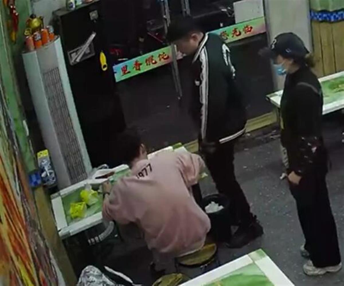 现场视频显示,一位身着粉色上衣的年轻男子正坐在店内吃饭,一黑衣男子突然拉了一下他的胳膊,一女子也走过来对他说,“你每次都来加太多东西了,下次来我们不卖了,你加了多少勺了。”黑衣男子随后开始对年轻男子进行谩骂和推搡,在催促未吃完饭的年轻男子付钱后,将其赶出门店,而年轻男子走出店门后,黑衣男子又继续骂脏话追打。视频发布者配文称:“顾客在馄饨店消费,因多加了调料,引老板推搡追打。”