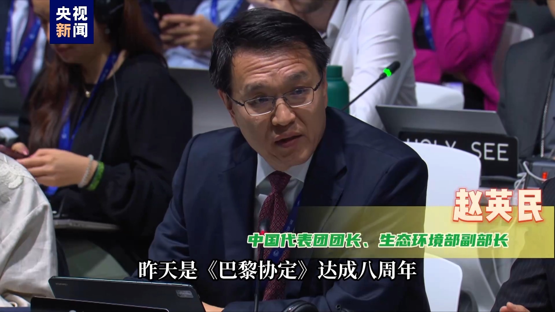 中国代表团团长、生态环境部副部长 赵英民:昨天是《巴黎协定》达成八周年,中方祝贺并感谢主席国阿联酋发挥杰出领导力,在这一历史性的时刻,推动COP28完成《巴黎协定》下的首次全球盘点,总结了成绩和缺口,特别是进一步巩固了全球不可逆转的绿色低碳转型的趋势,为未来指明了方向,向国际社会发出了强有力的积极信号,具有重要的里程碑意义。