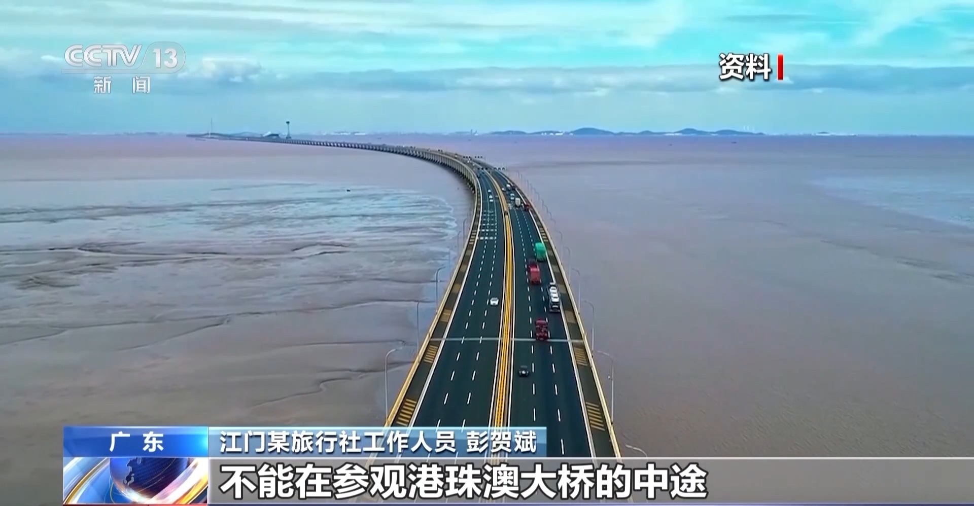 江门某旅行社工作人员 彭贺斌:参团的市民游客只能跟旅行团整团进、整团出,不能在参观港珠澳大桥的中途随意离团或者掉队。