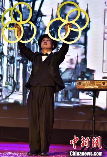 图为来自安徽职业技术学院的王健在表演节目《卓别林》。 中新网记者 张斌 摄