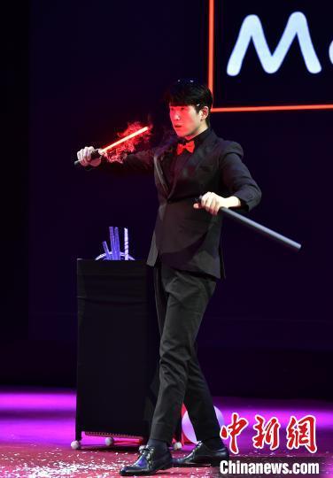 图为来自福建理工大学星宇魔术社的同学在表演节目《见证奇迹》。 中新网记者 张斌 摄