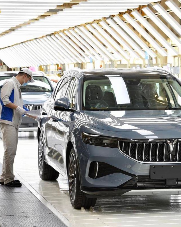 岚图汽车科技有限公司数字化总装车间,一辆辆岚图FREE新能源汽车陆续下线。(湖北日报全媒记者 李溪 摄)