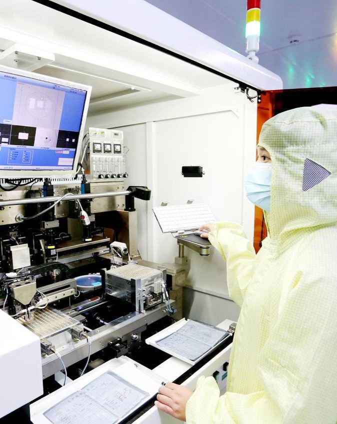 湖北安一辰光电科技有限公司员工在智能恒温无尘净化车间生产新年获得的首批2200万元光通信核心元器件订单。 (湖北日报全媒记者 张鸿 通讯员 郭斯 龚涛 摄)
