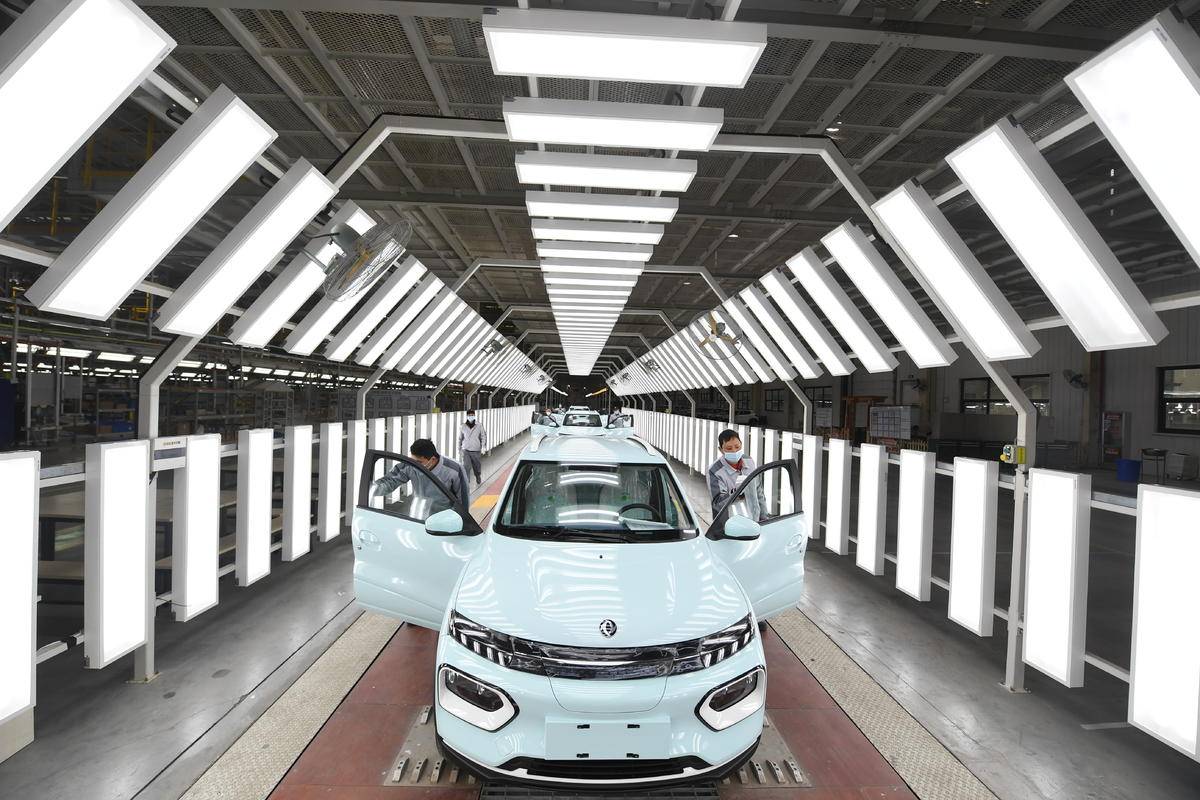 襄阳高新区东风新能源整车项目车间,检测员在生产线上检测新能源汽车。(湖北日报全媒记者田悦 通讯员王懿、谢勇 摄)