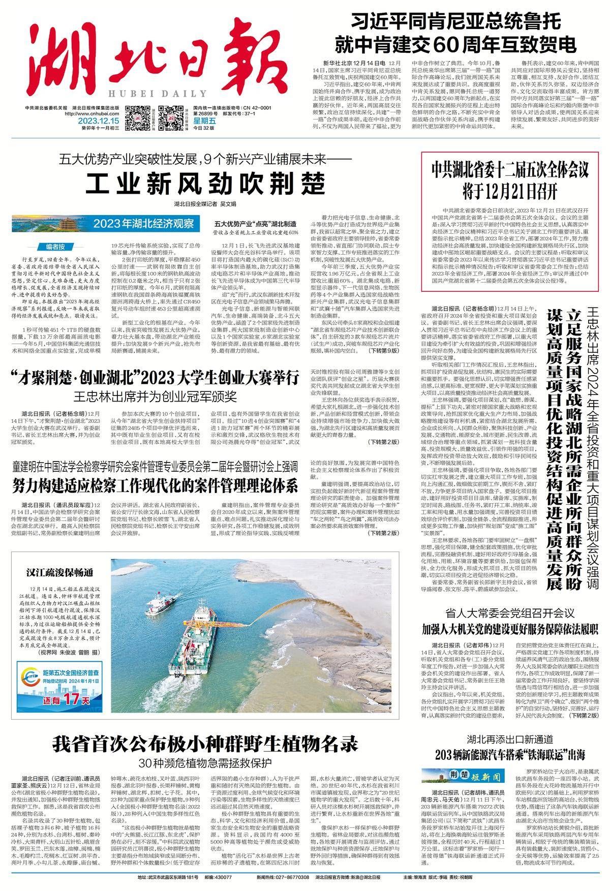 即日起,本报推出“2023年湖北经济观察”系列报道,反映一年来我省取得的经济发展成就和亮点。敬请关注。