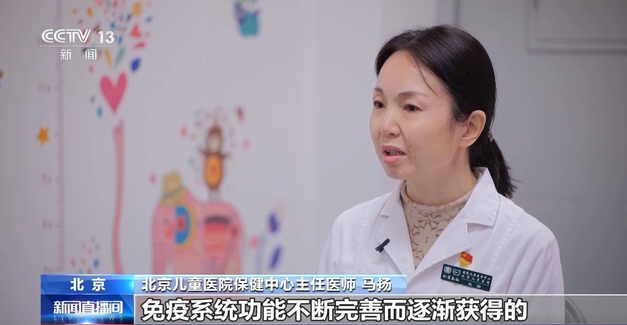 北京儿童医院保健中心主任医师 马扬:后天获得性免疫是随着儿童的成长,免疫系统功能不断完善而逐渐获得的,一般来说是通过比如说不断接触病原微生物反复侵袭,或者是接种疫苗,或者是体内肠道菌群不断健全。