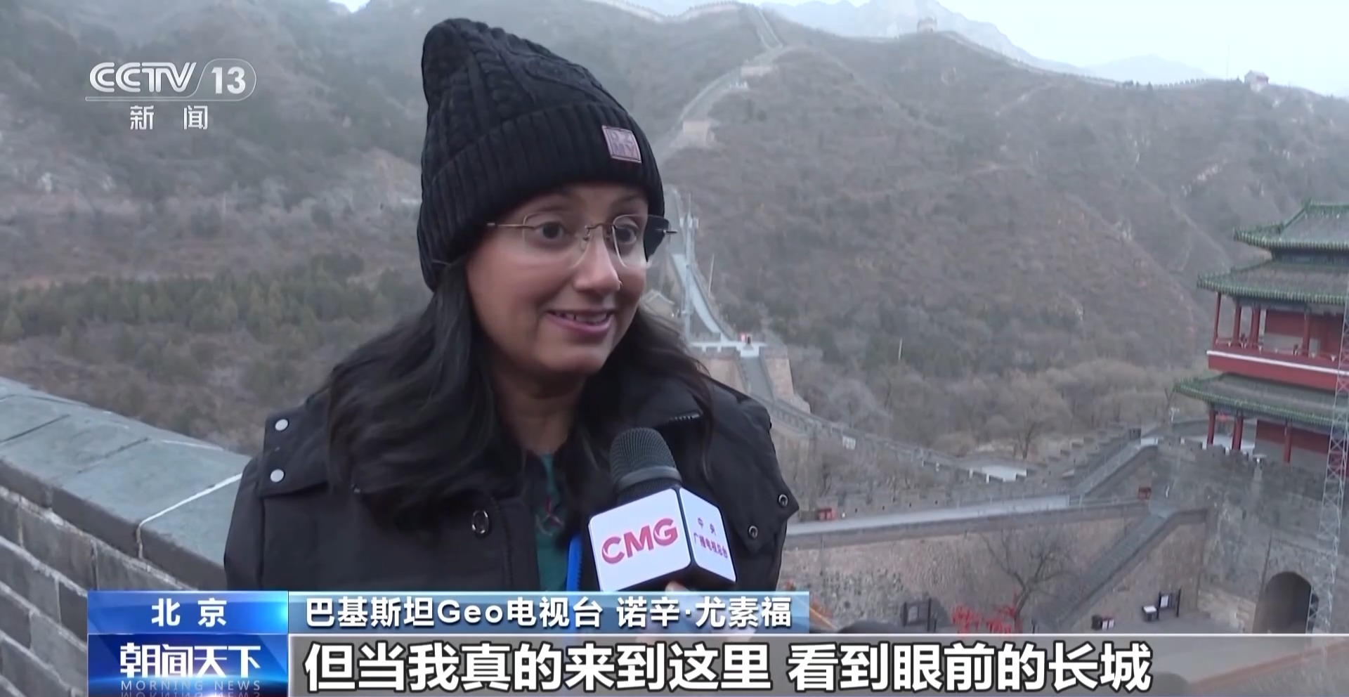 巴基斯坦Geo电视台 诺辛·尤素福:我一直梦想来到(长城),但当我真的来到这里,看到眼前的长城,(跟想象中的长城)完全不同。我想要游遍整个中国,因为我认为中国是一个繁荣的国家,一个充满未来的国家。